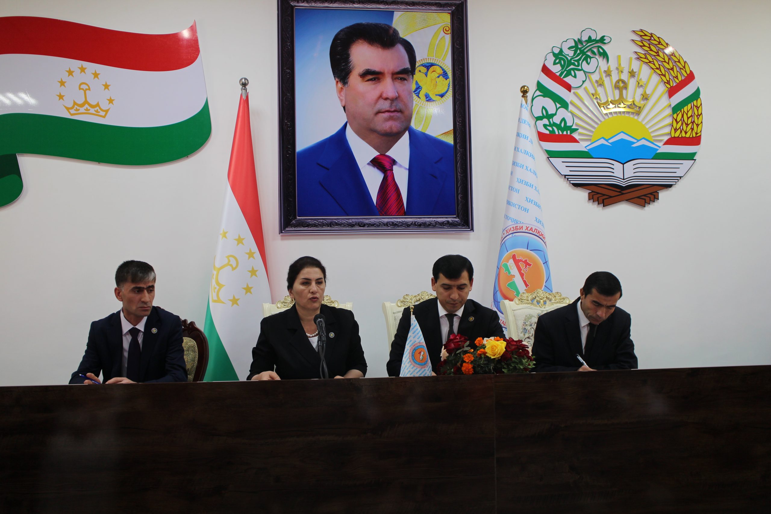 Бо ҳамин тартиб баромад намуданд: – Аҳмадзода Оятулло Изатулло раиси Ташкилоти ҷамъиятии ҷавонон “Созандагони Ватан” дар мавзуъи “Наврасону ҷавонон – нерӯи созанда ва ояндаи миллат” баромад намуда, ёдовар шуданд, ки Асосгузори сулҳу ваҳдати миллӣ – Пешвои миллат, Президенти кишвар, Раиси муаззами Ҳизби Халқии Демократии Тоҷикистон муҳтарам Эмомалӣ Раҳмон махсусан ба дастгирии ҷавонон ва таъмини онҳо бо ҷойҳои нави корӣ, дар асоси истифодаи технологияҳои иттилоотиву коммуникатсионӣ бо донистани забонҳои хориҷӣ таваҷҷуҳи хосса дода, пешниҳодҳои ҷавононро баҳри инкишофи Ватани азизамон доимо дастгирӣ менамоянд ва бунёди шароити мусоиди кору фаъолиятро барои ҷавонон пайваста таъмин месозанд. Тавре ки Пешвои миллат муҳтарам Эмомалӣ Раҳмон пайваста таъкид менамоянд: