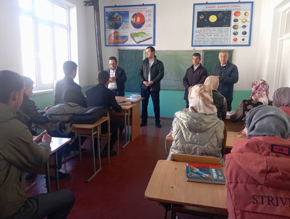 Дар вохӯрӣ аз тарафи гурӯҳи корӣ оид ба Қонунҳои Ҷумҳурии Тоҷикистон “Дар бораи уҳдадории ҳарбӣ ва хизмати ҳарбӣ”, “Дар бораи тарбияи ватандӯстии шаҳрвандон”, инчунин оиди пешгирии шомилшавии ҷавонон ба ҳизбу ҳаракатҳои ифротгаро, бахусус терроризм ва экстремизм, пушидани сару либоси ба миллати мо бегона ва дигар масълаҳои ҷорӣ мулоҳизаронӣ карда шуд.