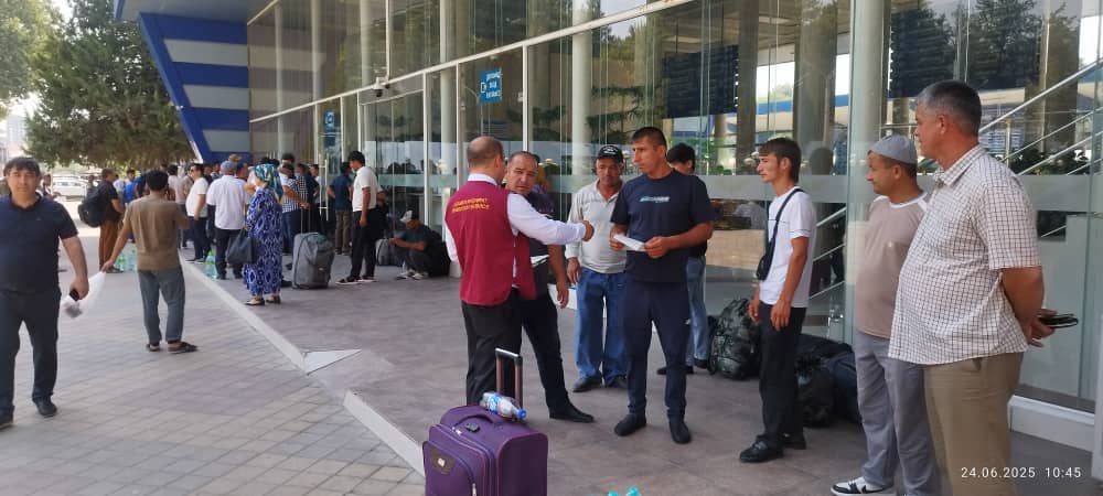 Сотрудники Миграционной службы регулярно встречаются с гражданами страны во время их поездок и возвращения из поездок, проводят разъяснительную работу по вопросам трудовой миграции, обсуждают недостатки и проблемы нового законодательства Российской Федерации о трудовой миграции, в том числе касающиеся получения сертификата на знание русского языка, истории и законодательства страны, патента, наличия профессии или специальности, и предоставляют им полезные консультации.