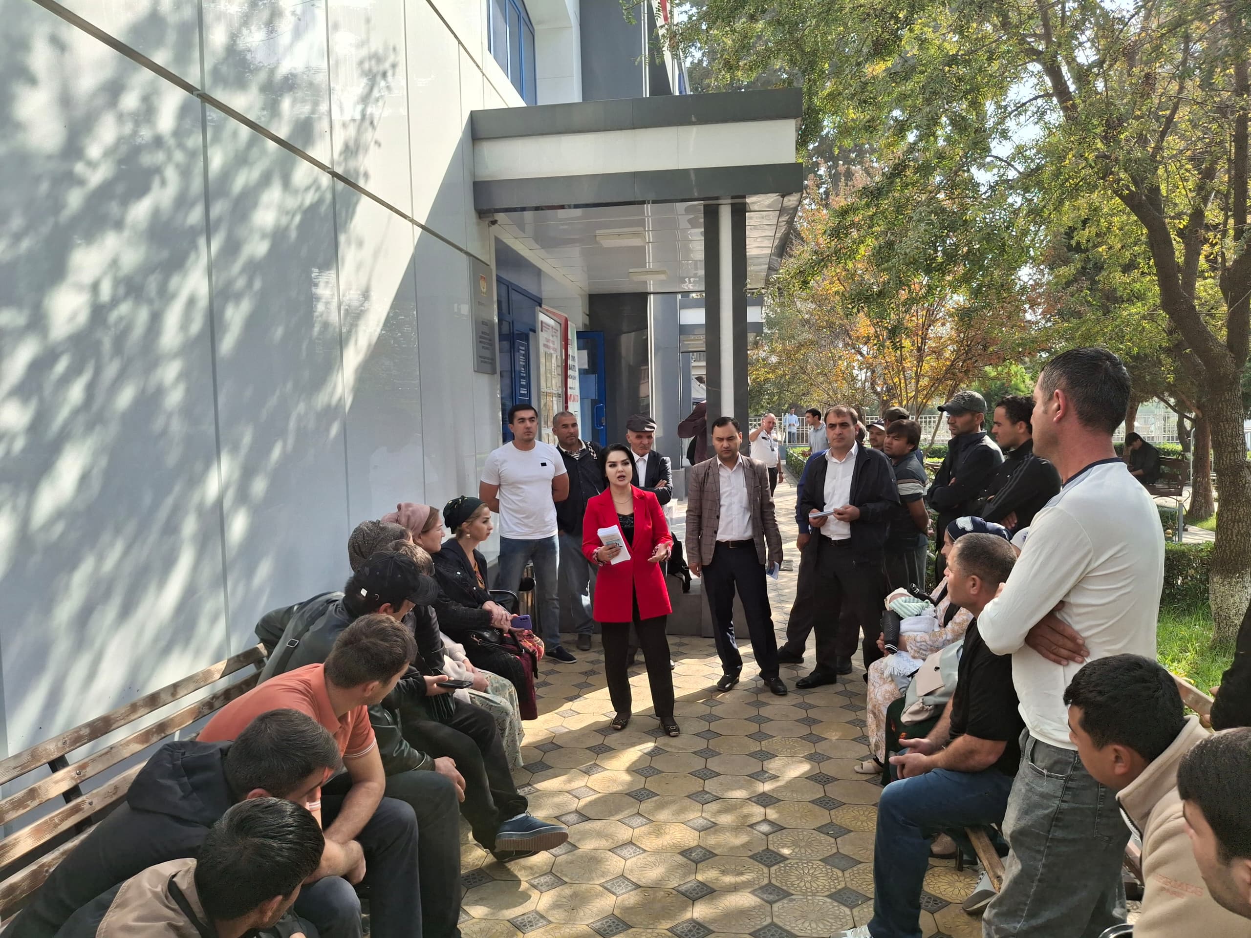 Сотрудники управление Миграционной службы в городе Душанбе совместно с Городским центром здорового образа жизни и Городским центром защиты населения от туберкулеза провели перед Миграционным центром просветительско-разъяснительную мероприятие по профилактике ВИЧ и туберкулеза.