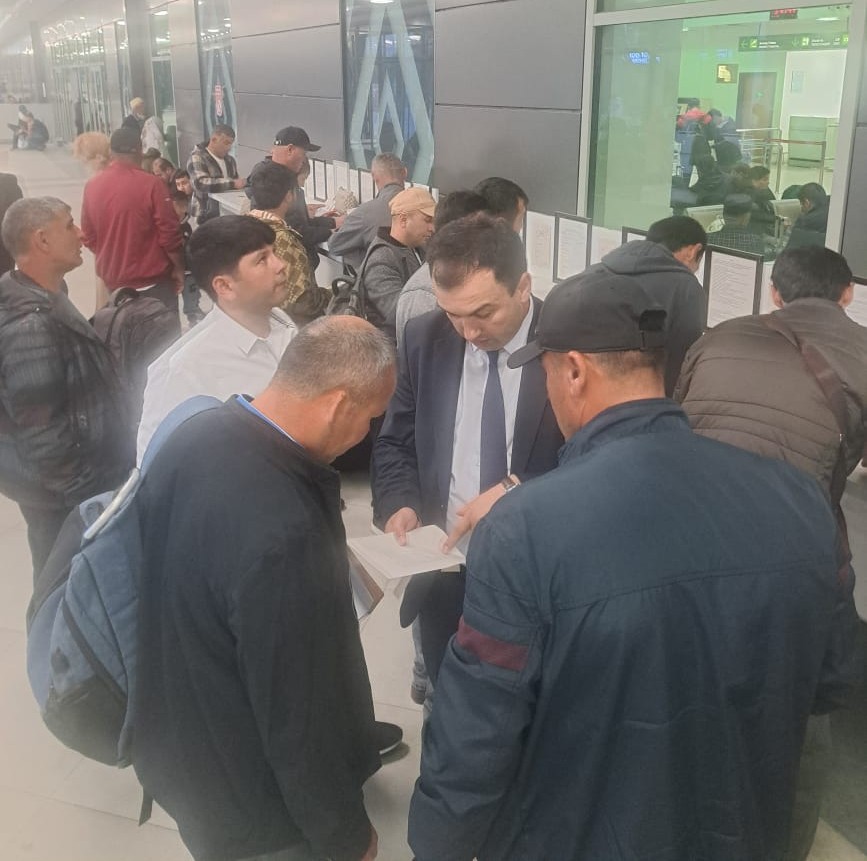 В “Международном аэропорту города Душанбе” продолжаются беседы и встречи с возвращающимися трудовыми мигрантами и мигрантами, намеревающимися выехать за границу, по вопросам обеспечения возвращающихся мигрантов постоянной работой в стране, вовлечения их в профессиональную подготовку и изучение языка, подготовки к поездке, предотвращения случаев вступления молодёжи в террористические и экстремистские партии и движения, торговли людьми, а также ознакомления их с новыми законами Российской Федерации о миграции.