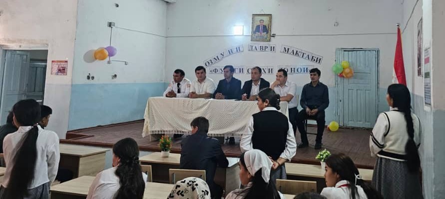 В актовом зале среднего учебного заведения района Н. Хусрав состоялась своевременная встреча с преподавателями и учащимися, организованная в соответствии с совместным планом Исполнительного органа государственной власти района под названием «Пути предотвращения вступления молодёжи в экстремистские партии и движения и актуальные проблемы общества».